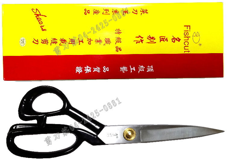 編號:AH30 品名:名匠 10吋 裁縫剪刀 S910 尺寸:約全長240mm 材質:刀刃-德國優質鋼 顏色:銀 / 黑腳 包裝:單支盒裝 製造:名匠 / Fishcut 產地:大陸 商品特色: 1. 台商製造・品質保證 2. 德國優質鋼 3. 耐磨好剪,銳利無比 4. 各式尺寸及款式皆可供選擇 5. 家用營業用皆適宜