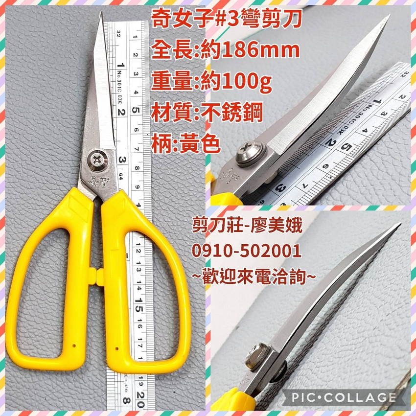 編號:AUTG3 品名:奇女子 #3 ST 彎剪刀 全長:185mm 用途:試用於製鞋修邊及其他修邊用途。 【工業用彎剪刀維修研磨費用】